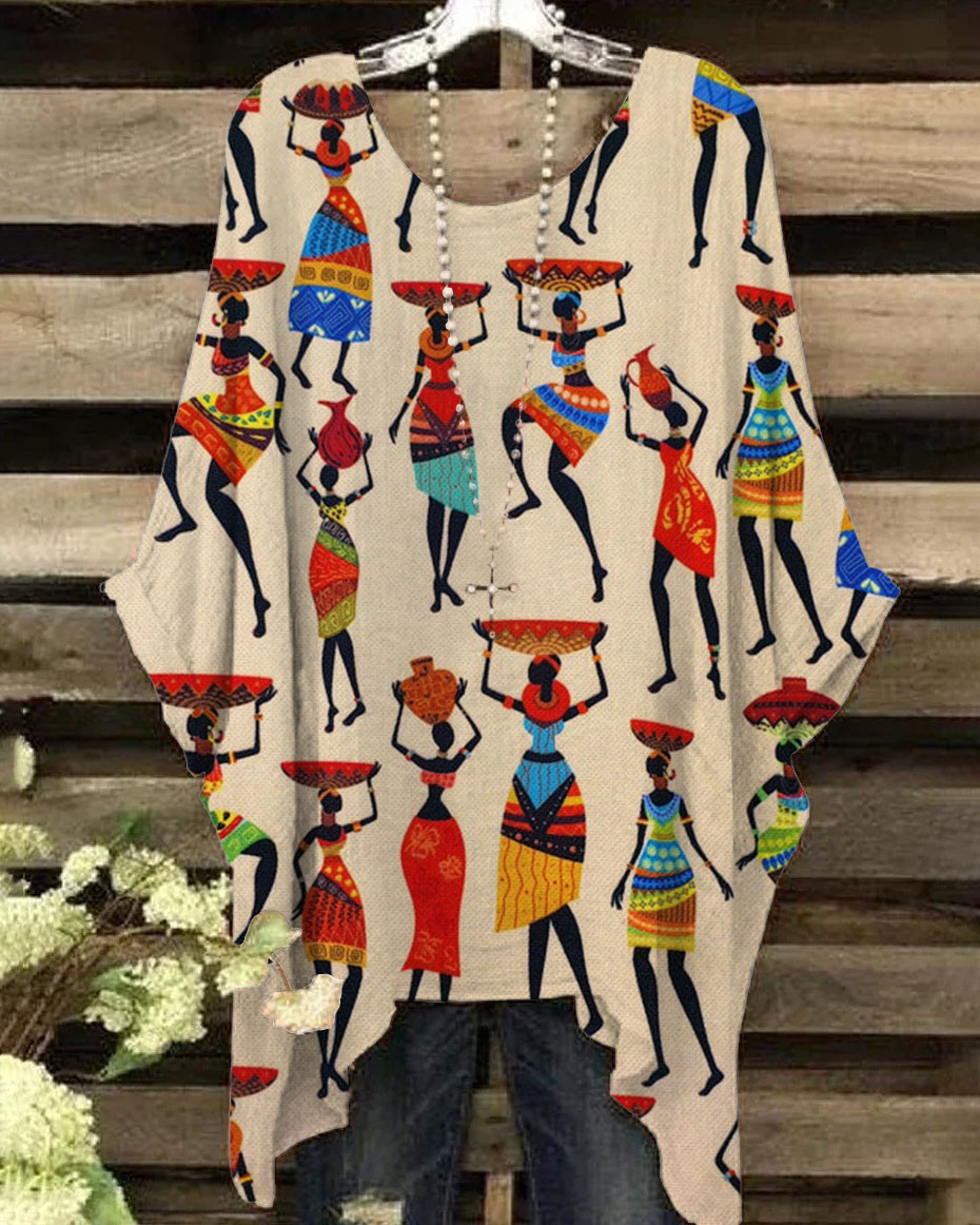 African Ladies in Ethnic Dress Print Irregular Shirt