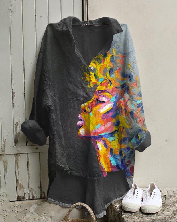 Afro Girl Oil Painting Cotton And Linen Tunic Shirt