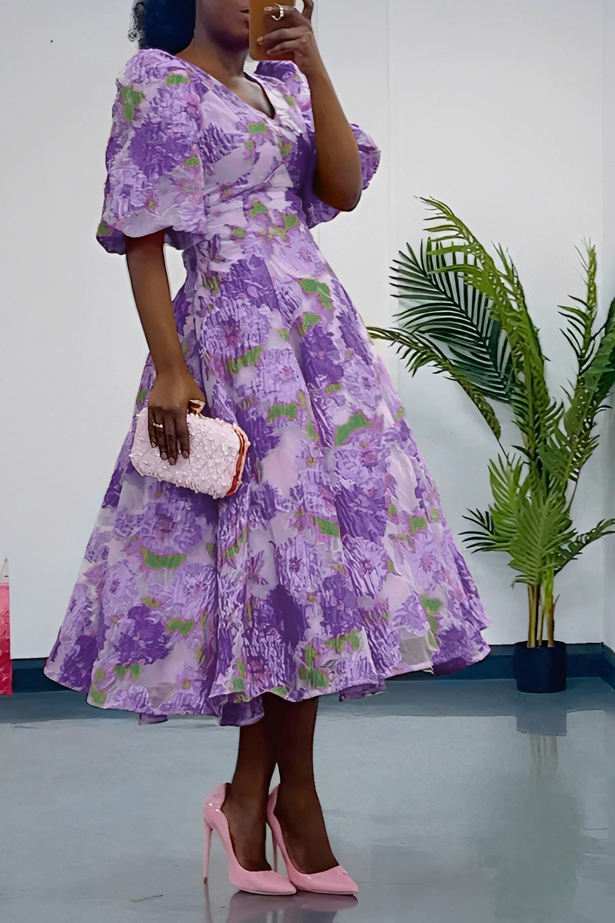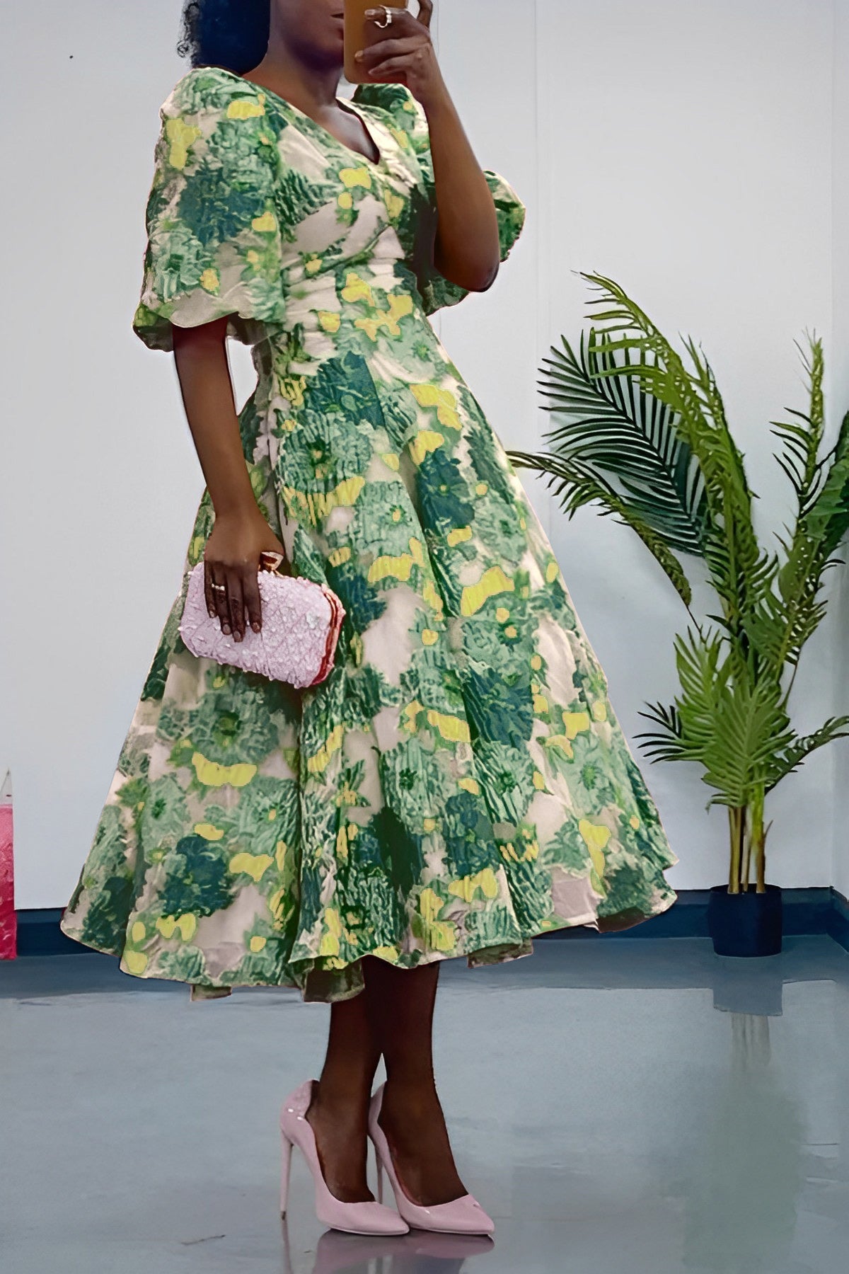 Embrace the beauty of spring with our Stylish Puff Sleeve Botanical Print Dress, featuring an a-line style and a lovely floral design. This dress is ideal for attending a spring brunch or a wedding, adding a touch of elegance and sophistication to your look. The combination of the low-cut neckline, puff sleeve, and floral pattern creates a perfect balance of style and femininity, making it a versatile and eye-catching choice for special occasions.