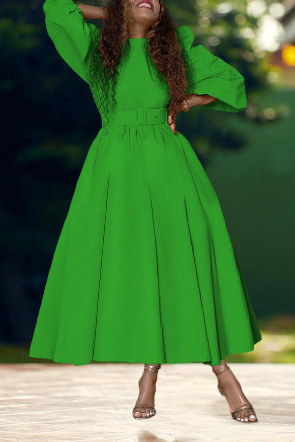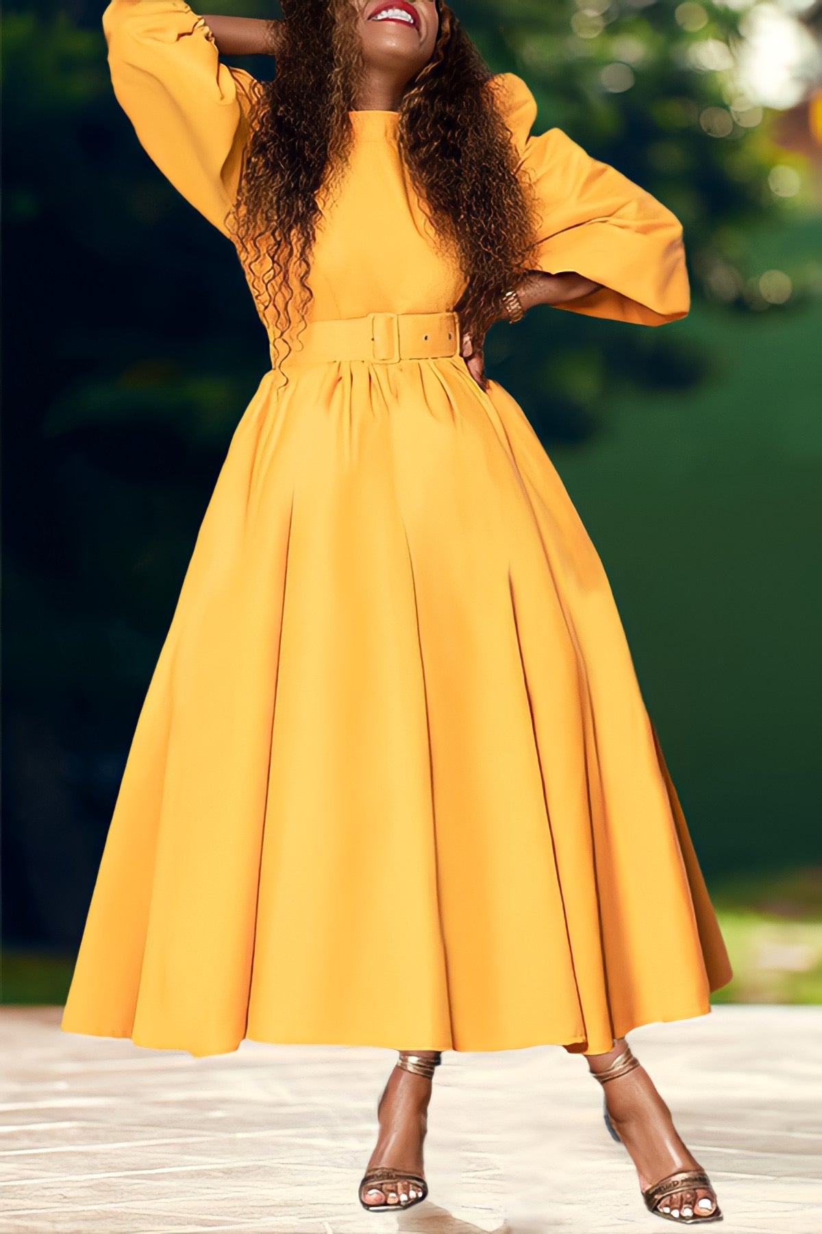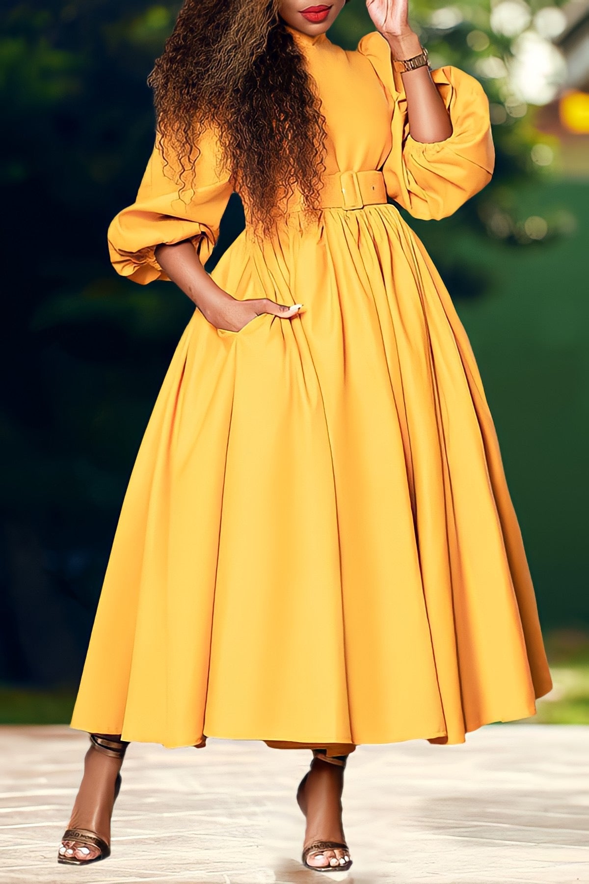 The Gorgeous Lantern Sleeve A-line Dress is crafted from soft and comfortable polyester fabric. With its calf-length silhouette, ruffle sleeves, and elegant funnel neckline, this dress exudes sophistication and style. Perfect for any occasion, its A-line design ensures a flattering fit for every modern woman.