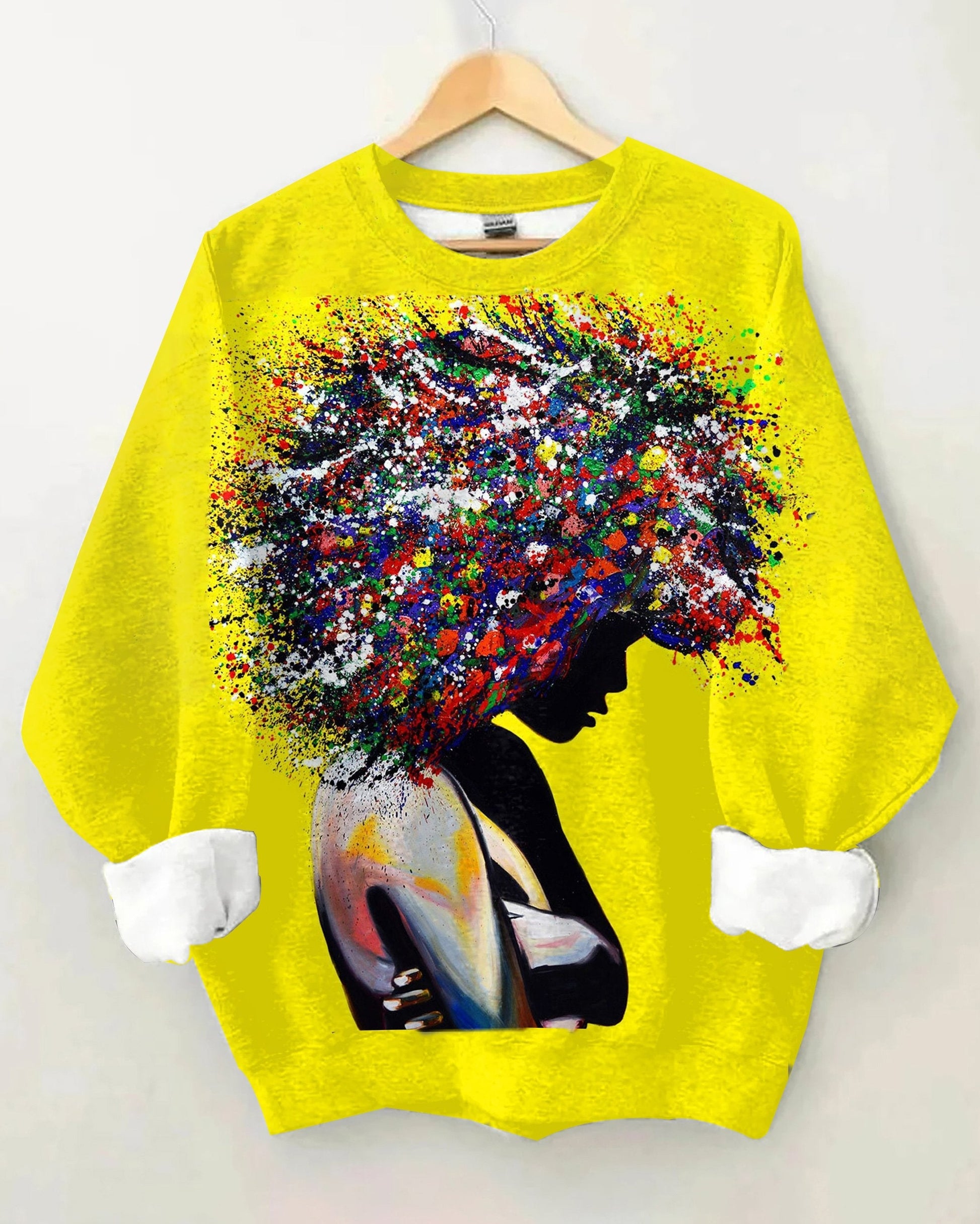 Colorful Afro Art Oil Painting Long Sleeve Sweatshirt
