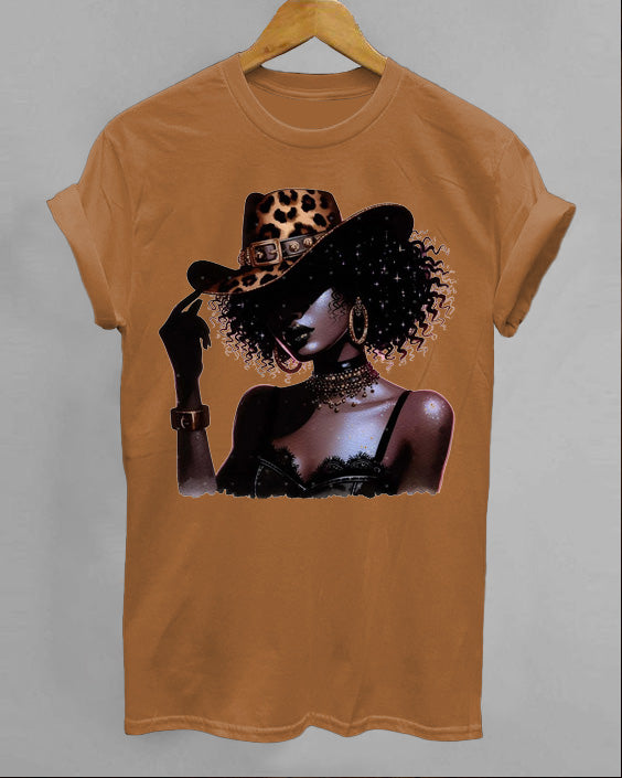 Cool Black CowGirl Crew Neck Short Sleeve Cotton T-shirt