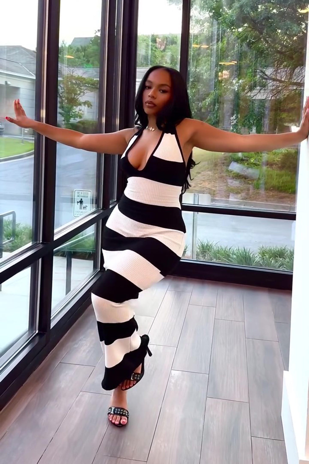 Halter Lace-Up Colorblock Slim-Fit Vacation Maxi Dresses-White [Pre Order]