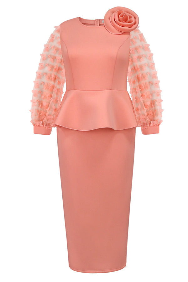 Stunning 3D Flower Butterfly Decor Sleeve Peplum Dress