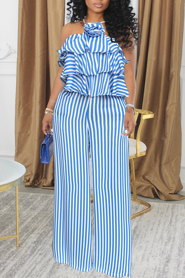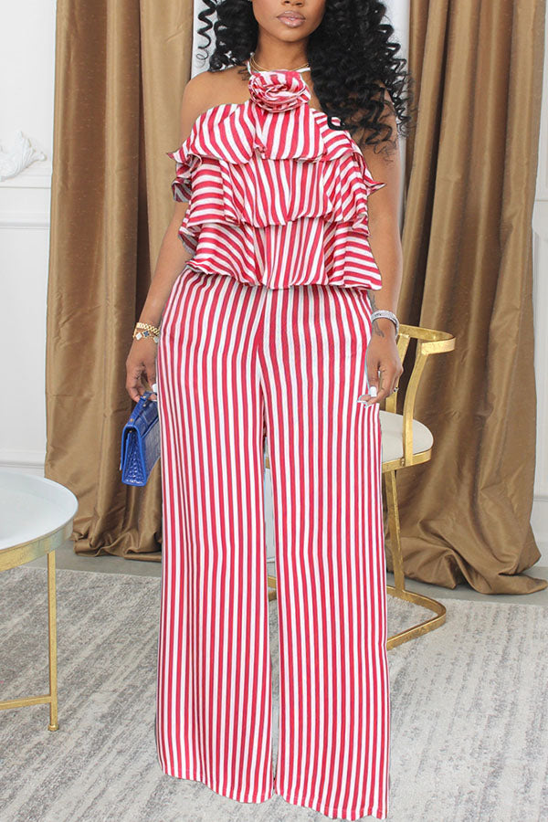 Stylish Halter Striped Top & Pants Set